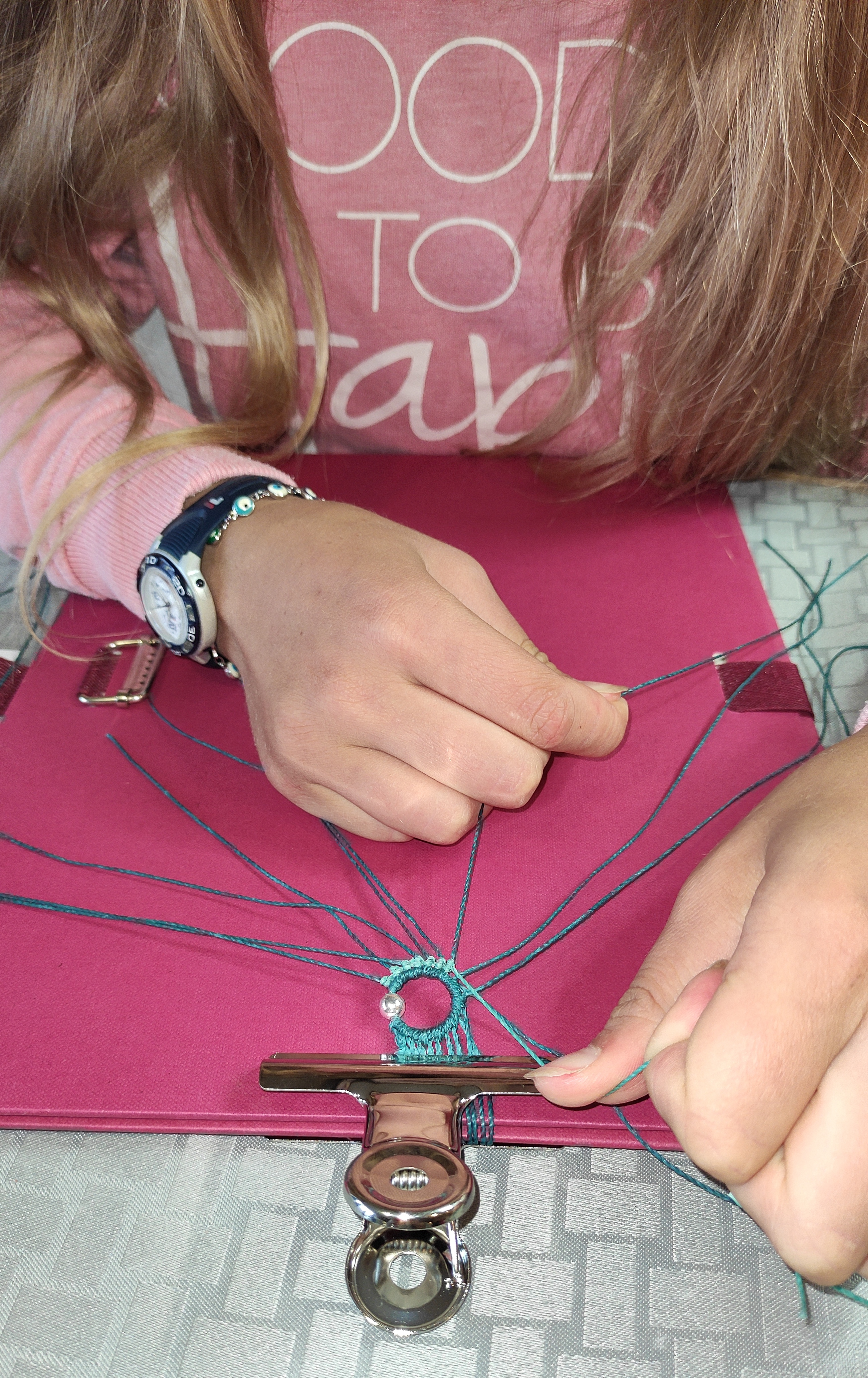 Ton animatrice Marlène va t’accueillir pour passer une joyeuse après-midi. Tu invites tes copains à venir à Medeyrolles, au Centre Anahata où vous aller vous amuser à tisser des bracelets en macramé.